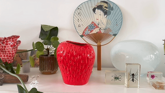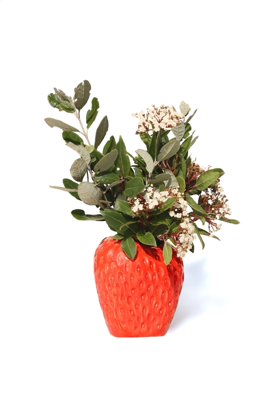 Nuestra frutilla grande este hecha a mano y esmaltada con esmalte apto para el consumo.